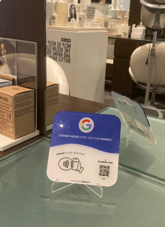 Oui, il est vivement conseillé de créer une fiche établissement Google, car elle pourra être reliée à votre plaque NFC. Cette fiche est essentielle pour recevoir des avis directement sur Google. Si vous n’en avez pas encore une, informez-nous et notre équipe vous accompagnera dans sa création. -